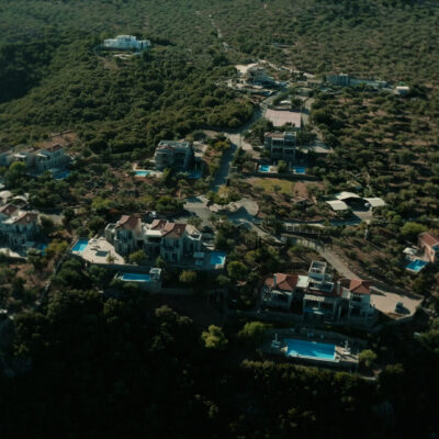 The olive groves, stone walkways dotted rich flora surrounding the villas, are all encircled by a private forest offering total seclusion from the outside world.